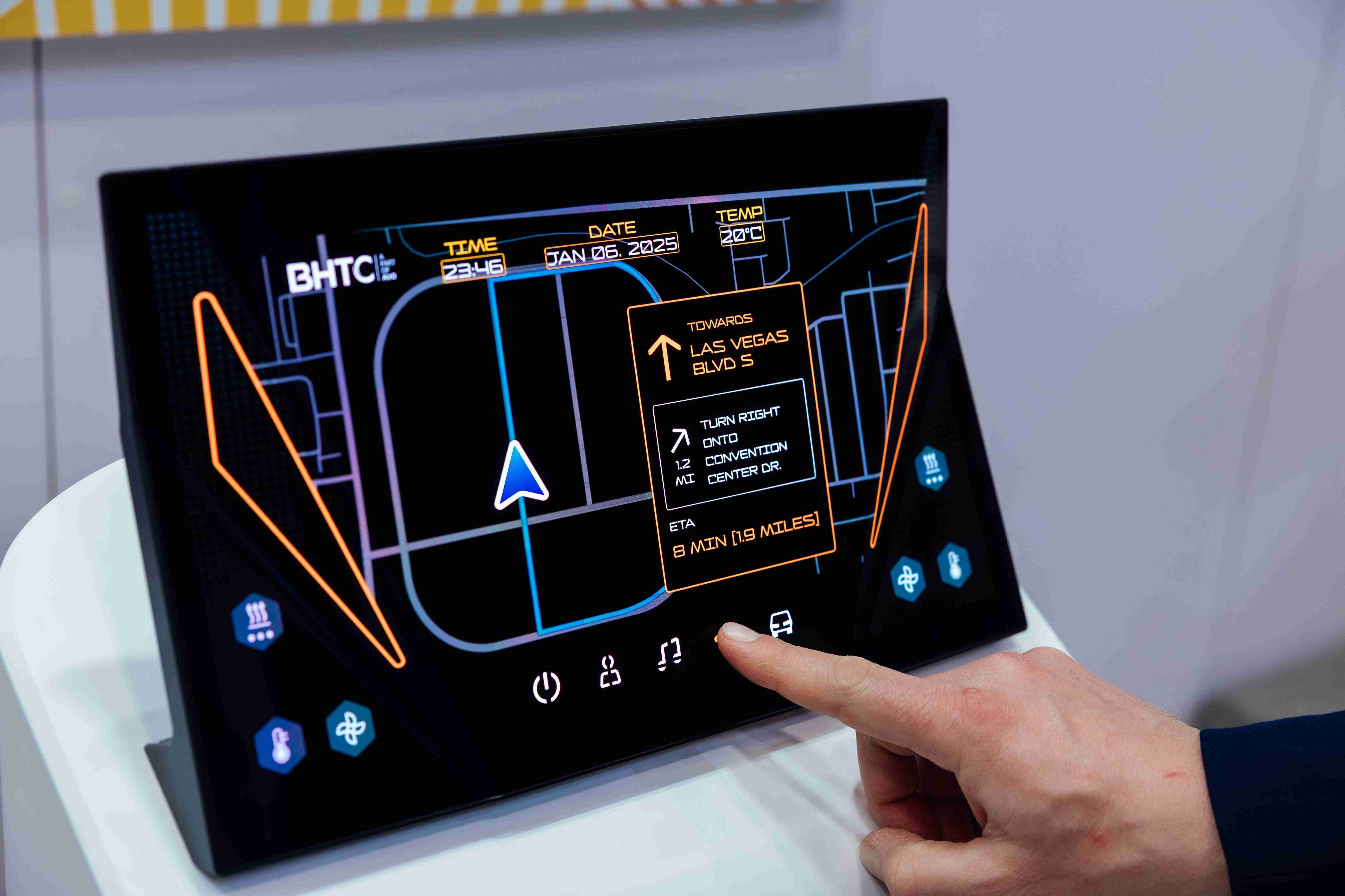 Micro LED可折迭触控显示器(Haptifold Display)结合BHTC多年HMI设计经验,,整合中控台和温度控制功能,,以优美的曲面和独特的外型助力车内设计美学,,在辅以触控回馈下,,,,为驾驶带来更直觉的使用体验。。。