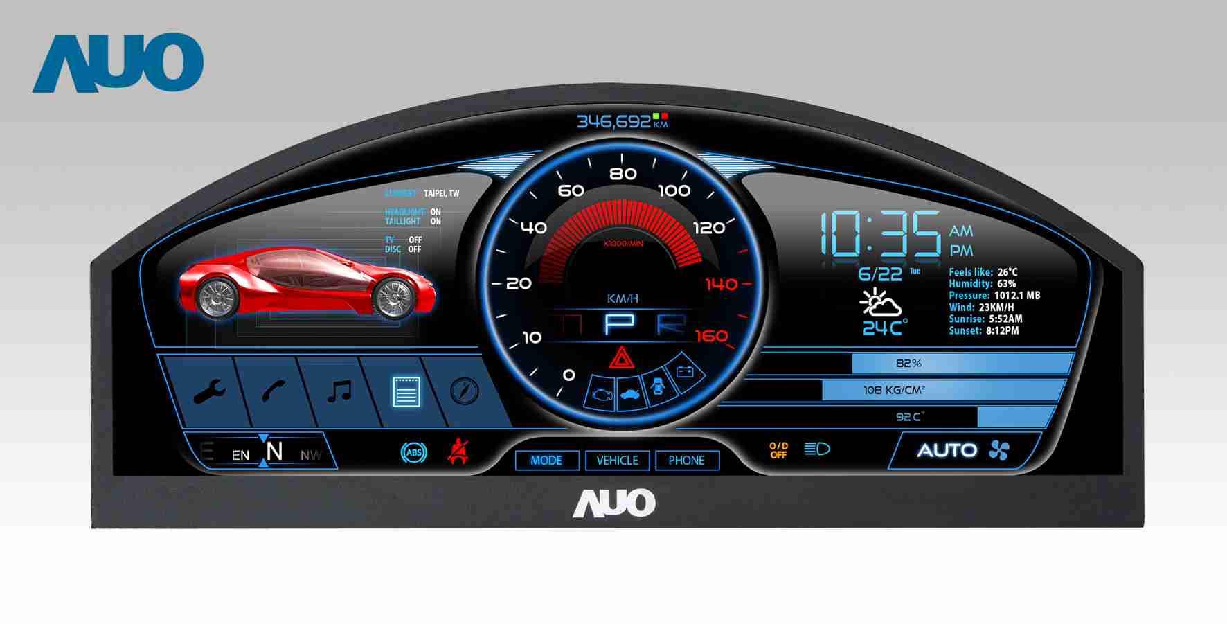 CG电子 12.3吋超高解析异型切割车用面板,,,,拥有流线外观及精细画质