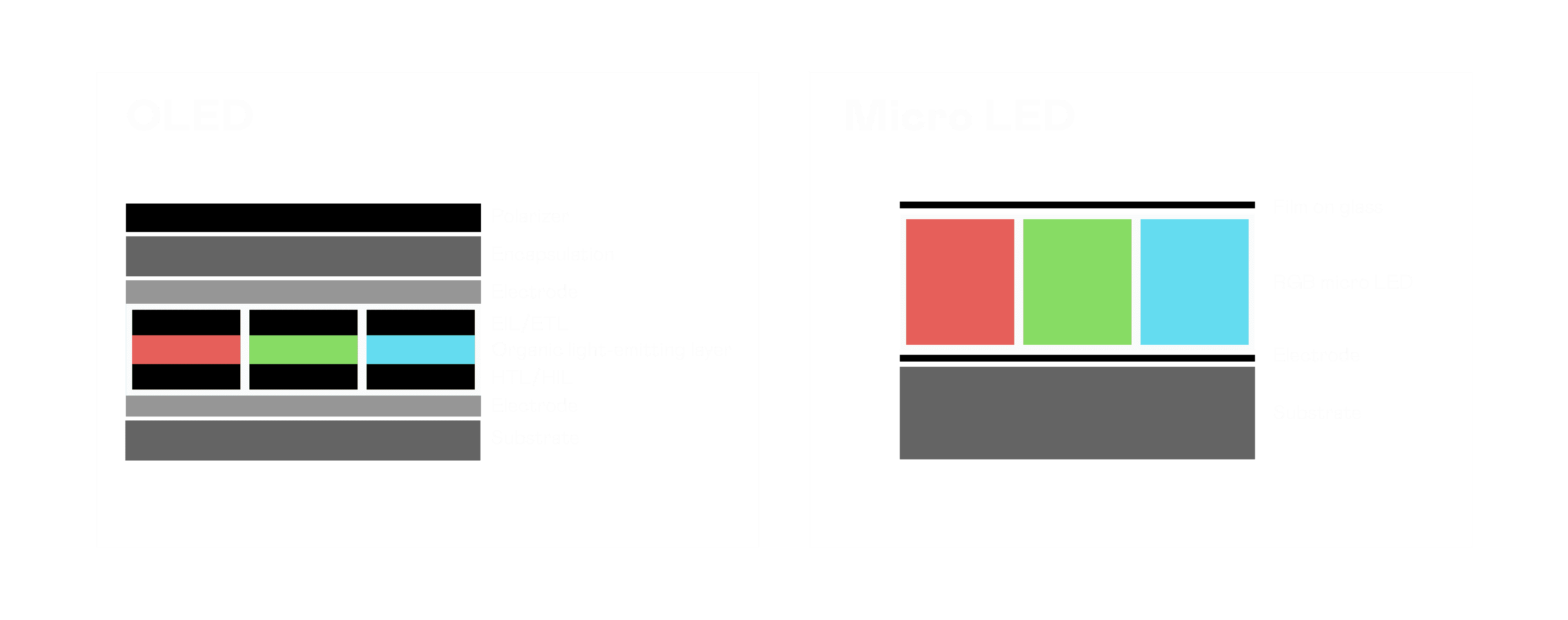 以 LED 做为显示画素,,,,可让 LED 的发光效率发挥到极致,,从而让显示器具备优异的亮度表现,,,,不论是在户外或室内,,,,均具备出众的显示效果。。同时,,,,与使用有机材料的 OLED 相比,,,LED 具备更稳定、、、寿命更长的特性,,,不仅不会有画面烙印问题,,,而且更不容易出现故障、、、、坏点。。。