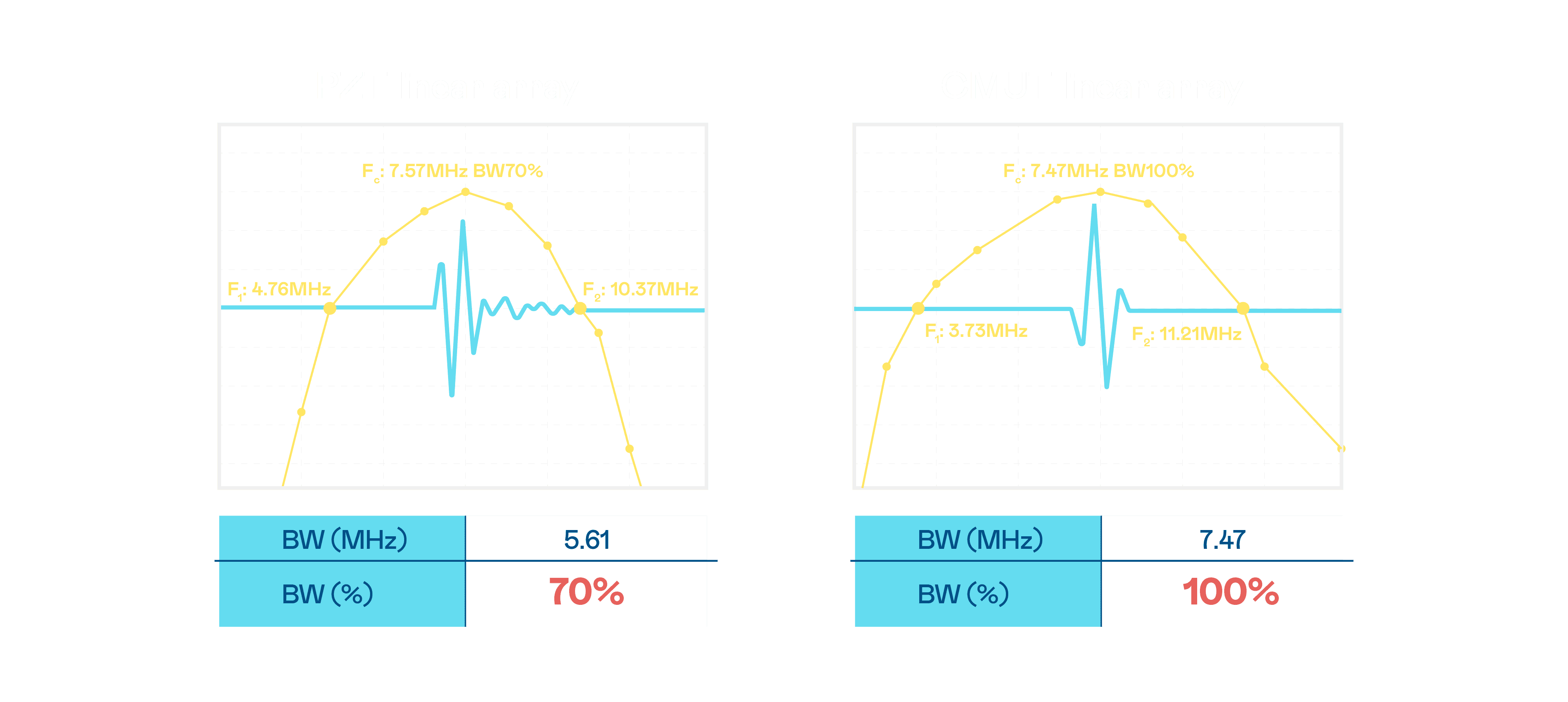 超音波影像的解析度高低,,,首先取决于探头能发出的讯号频宽。。。CG电子 CMUT 可提供高清晰的超音波讯号,,,提供高频宽、、、高灵敏度、、、影像纹理细节更高的超音波影像,,,协助医护人员缩短影像判读时间及利用精准的医疗影像进行诊断。。。